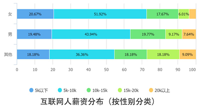浠庢諱綋鏉ョ湅錛屼簰鑱旂綉浜鴻柂閰殑涓綅鏁拌惤鍦?k鍒?0k榪欎釜鑼冨洿鍐呫傚彧鏈?4%鐨勪簰鑱旂綉浜烘嬁鍒頒簡瓚呰繃15k鐨勯珮钖紝渚濈劧鏈?0%鐨勪簰鑱旂綉浜烘湀钖笉鍒?k銆?/P>